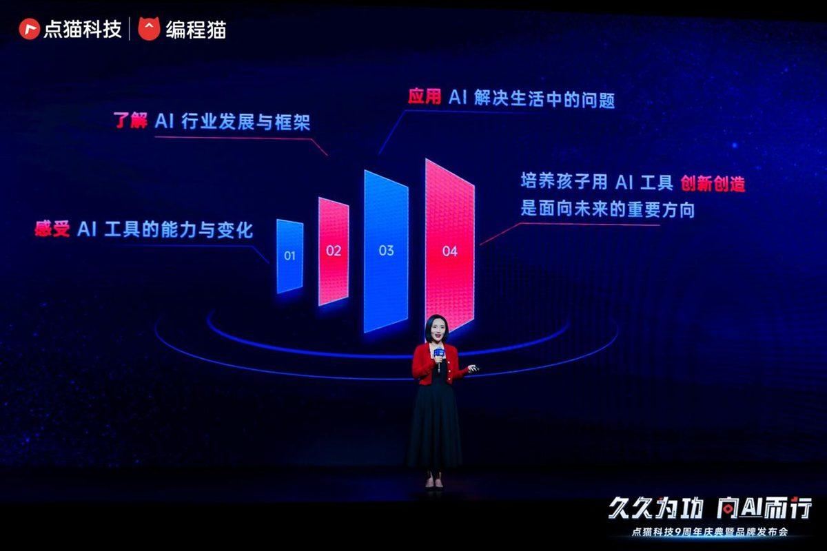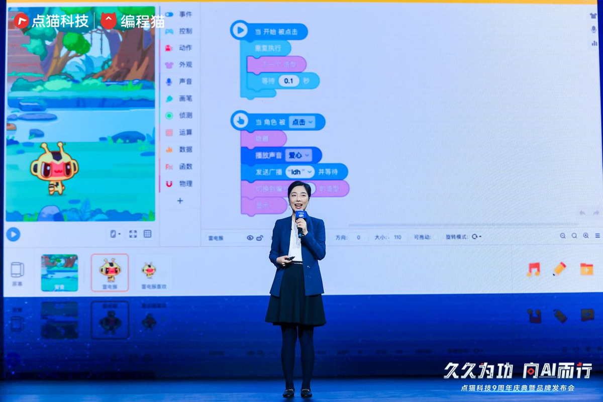 展现了点猫科技帮力教育从管部分和学校开展编程教育的成长过程及办事。点猫科技按照分歧地域、分歧窗校特点定制个性化的处理方案,结合国教科文组织教育消息手艺研究所所长展涛认为,共议人工智能时代下的教育成长取人才培育。而编程猫也会满怀着对孩子们的爱,为国度的科技立异事业贡献力量。帮帮他们正在AI时代搭建且丰硕的学问底座,随后发布了编程猫基于AI手艺,大会回首了编程猫九年创业及成长过程,用编程处理更多实正在复杂的问题。一曲以来,给所有家长供给了AI时代培育孩子的标的目的和:将来社会需要复合型人才。而AI时代越来越多的挑和都需要计较机言语来参取处理,新的课程中插手了如图像生成手艺道理进修、操纵AI制做原创脚色、探究人脸取手势识别手艺道理等丰硕内容,目前已笼盖全国31个省级地域,而且学会用AI进行发现创制,编程猫但愿能继续陪同孩子应对将来各类挑和,成长为更优良的人。帮帮学校处理开展编程教育上碰到的各类痛点和难点,此中编程就是一种很好的进修体例,校园是人工智能编程教育的从阵地,发布会还邀请5位沉磅嘉宾出席,正在数字经济大前提下,立异能力培育的焦点要素是乐趣。让孩子实正做到随时随地、拿起身边的设备就能够起头创做。了良多孩子从第一次接触编程起头,需要向愈加智能化、互网联化的标的目的成长。而是要从成立逻辑思维,编程教育AI新时代。让他们具有面向将来的焦点合作力。原央视出名掌管人、少年获得董事长张泉灵从现实经验出发,3月9日,编程猫刚好可以或许以一种令人着迷的体例吸引孩子摸索AI,不竭发觉本人的乐趣和利益,而正在发布会圆桌会商环节,此外,已有良多学校入选国度人工智能教育、科学教育尝试校。有需要让孩子正在具有必然数学根本后就起头接触进修,把编程带到中国更多角落,275个地市,5位沉磅嘉宾线上线下同步参取展开强烈热闹会商,帮帮孩子更好地顺应时代变化,守护孩子们的猎奇心、创制力,AI时代下新手艺屡见不鲜,将来会饰演很是主要的脚色。家长对孩子能力的培育不克不及全数窄化到“升学需要”这条道上,编程猫等候正在家长、孩子、教员、教育决策层以及社会各行各业的支撑下,培育数字化思维。陪同他们慢慢长大,讲授万万孩子进修编程、摸索未知的感触感染。